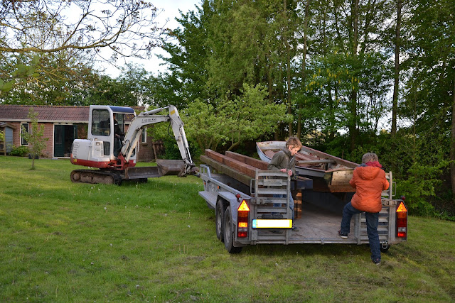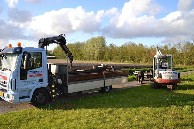 Het Cultuurerf te Den Andel is dezer dagen het toneel van enkele Grote Werken. Zo wordt volgende week gestart met de aanleg van een brug naar Het Prieel, zodat we dit bijzondere plekje vanuit het grasveld kunnen bereiken. Het Prieel en de brug zullen een bijzondere rol spelen tijdens het evenement Dichters op het Erf (15 juli a.s.). Toondichter Foleor van Steenbergen is dan de Dichter in ’t Prieel die zijn nimfen over de brug zal laten dansen. Vanavond werden de brugdelen gebracht, alsmede enig materieel om de constructie van het Werk te volbrengen. Een foto-impressie: